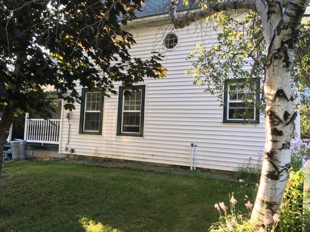 We could conceivably take the cash from that and start the house. But it would not be as large as this one and this one isn’t that large. We live in an old farmhouse built in 1839. It’s been added onto several times but YEARS ago. The wing that is our bedroom/laundry room, etc. was brought over by dray horses and attached to the original house. The outside back porch and the attached garage were added at some point, as was a long room with skylights that the previous owners used as a craft room. There is a little, unfinished room behind that which is directly over the laundry room.