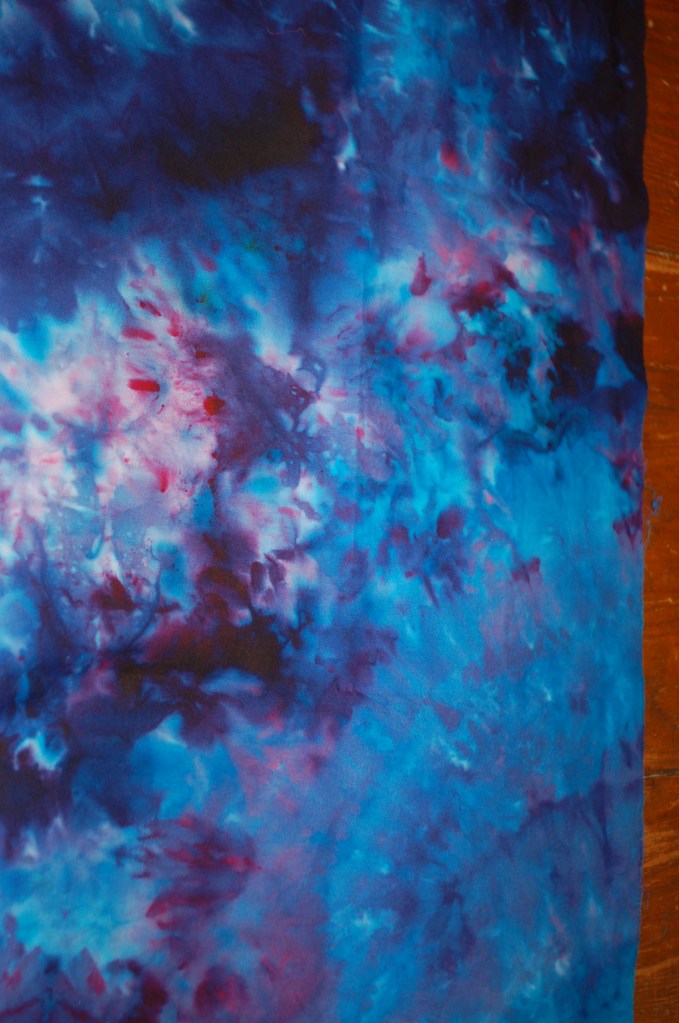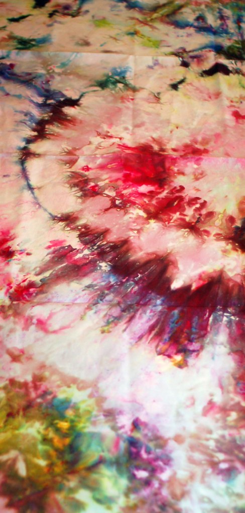 Since I don’t, I have to add action to my imagination. That’s not horrible because I do enjoy the process of creating. The choosing of fabric, the choosing of colors, the actual application of dye …………. all of it.